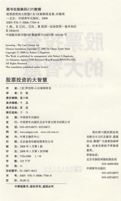 汉格斯特龙是莱格·梅森集中资产公司副总裁兼总经理,著有《沃伦·巴菲特的投资组合》、《沃伦·巴菲特之道》及《体育经济——纳斯卡之道》等畅销书,和家人居住在宾夕法尼亚的韦恩。 莱格·梅森资产公司是美国著名的投资基金公司,使其闻名的是曾经为其掌舵,连续15年打败标普500指数的基金经理比尔·米勒。罗伯特G.汉格斯特龙是他的同事和朋友,本书得到了比尔·米勒的大力帮助。